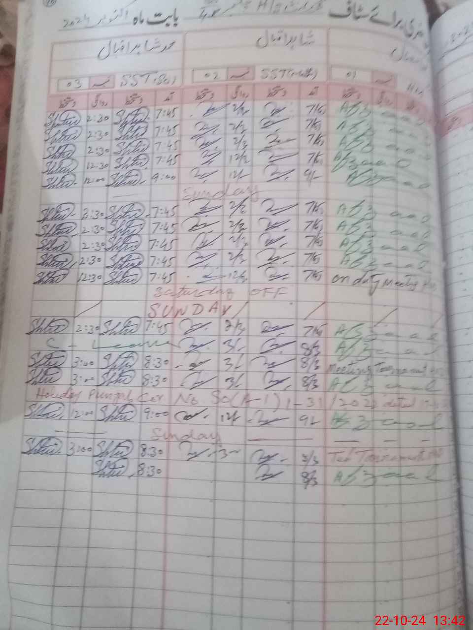 | CNIC | Full Name | Designation | R/C | Absence During Last Calender Month |