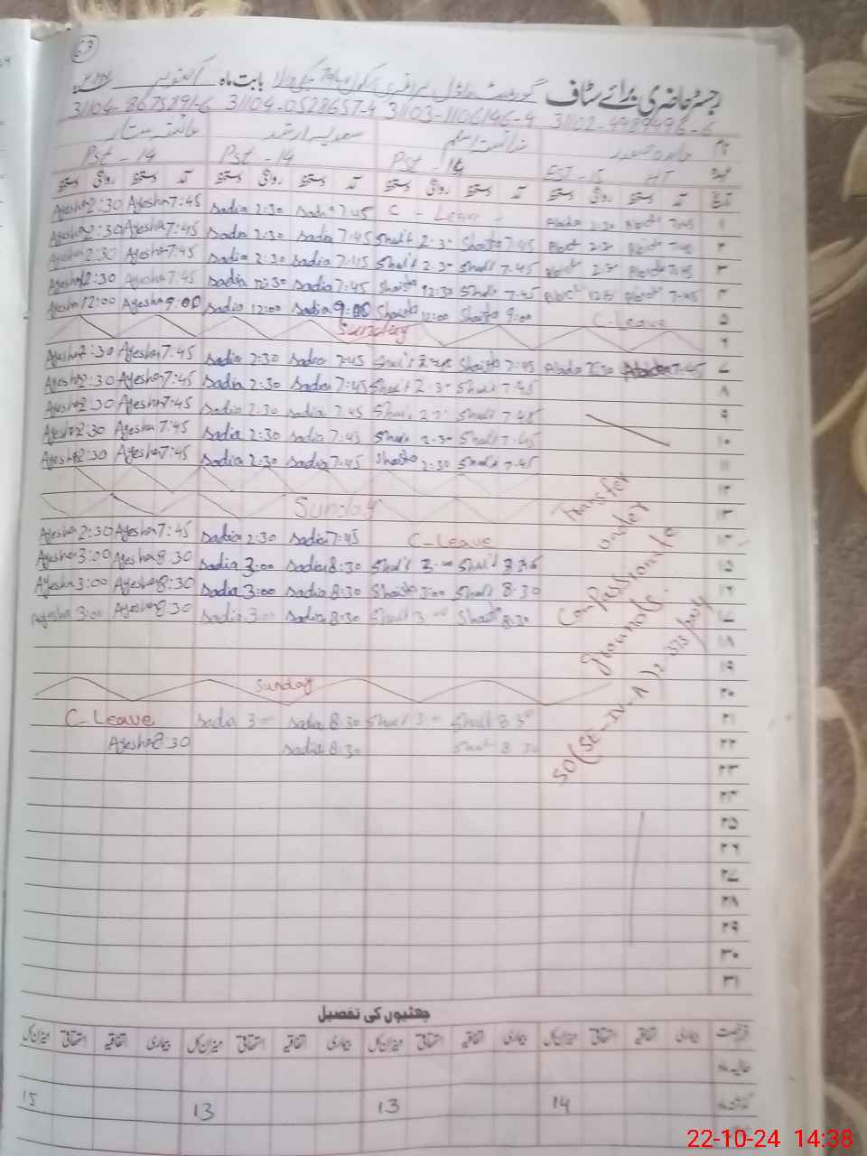 | 31**** | Sh**** Na**** | 2 | 2 | 0 | 0 | 0 | 0 | 0 | 0 | 0 | 0 | 0 | Maternity |