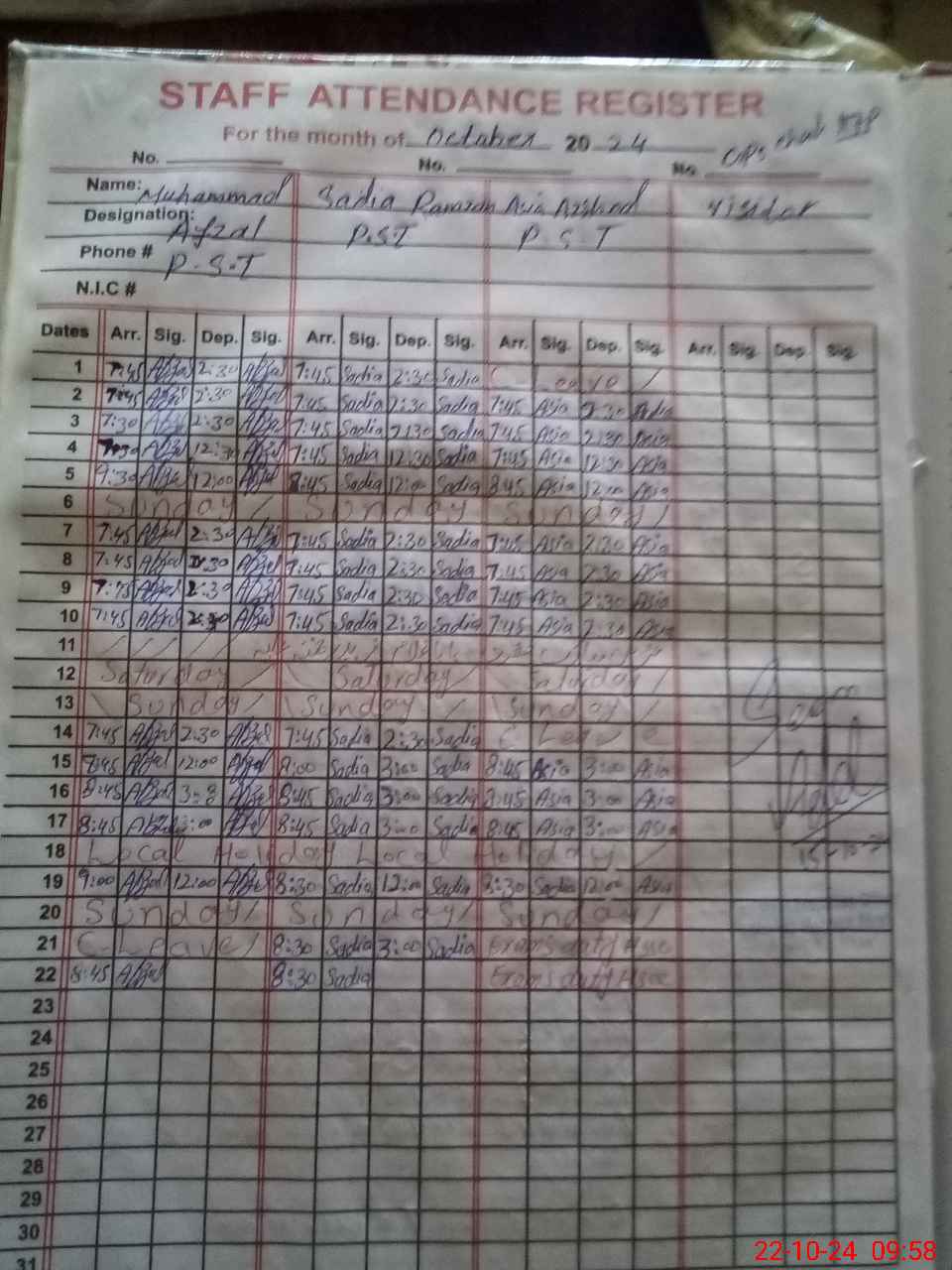 | 31**** | As**** Ar**** | PST | Regular | 0 | 8 | 0 | 0 | 0 | 0 | 0 | 0 | 0 | Exam Duty |