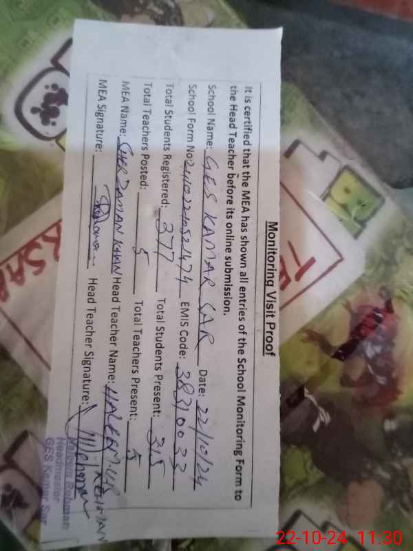 | EMIS Code: 38310033 | Name of School: GES KAMAR SAR | |||