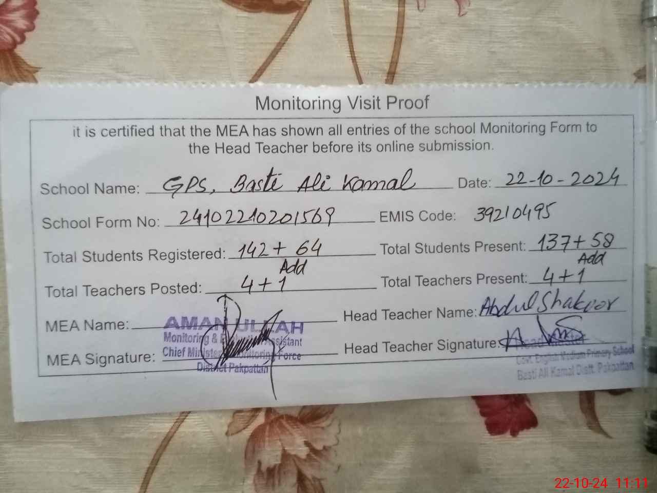 | EMIS Code: 39210495 | Name of School: GPS BASTI ALI KAMAL | |||