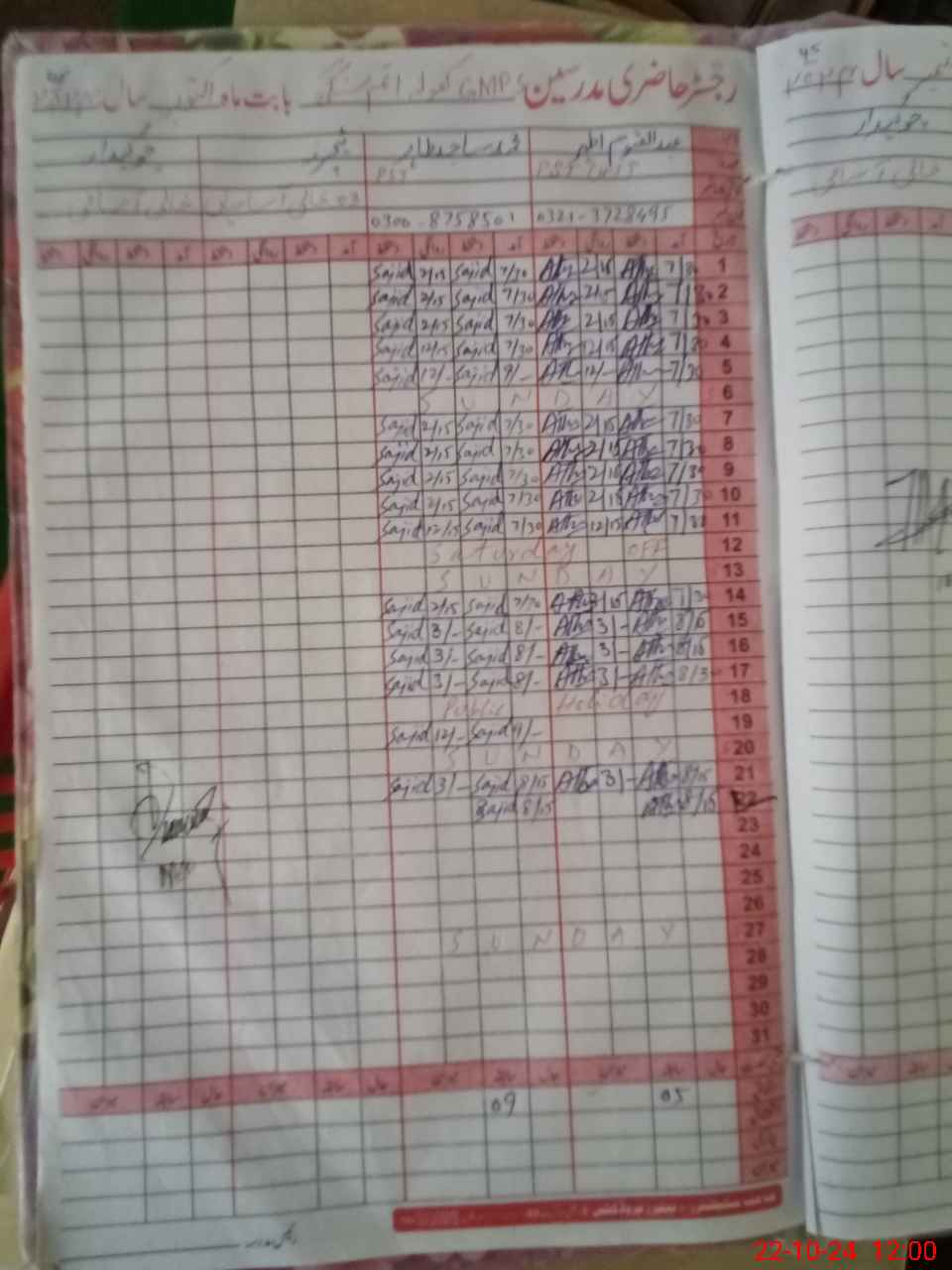 | Name: AB**** QA**** AT**** Designation: (School Headmaster's/Headmistress's) PST Phone/Cell Number: 03**** |
