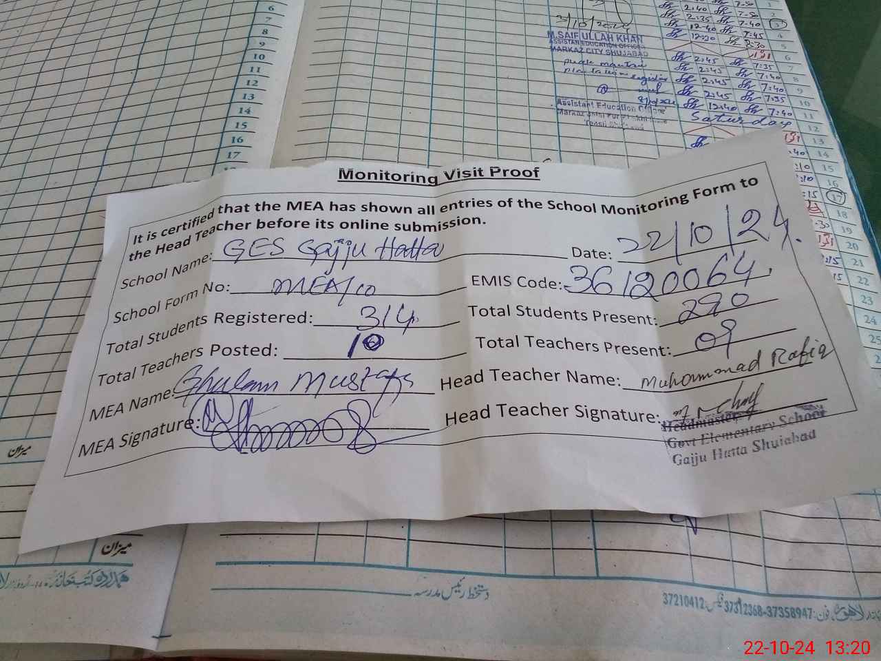 | EMIS Code: 36120064 | Name of School: GES GAJJU HATTA WARD NO 1 P/O SHUJABAD | |||