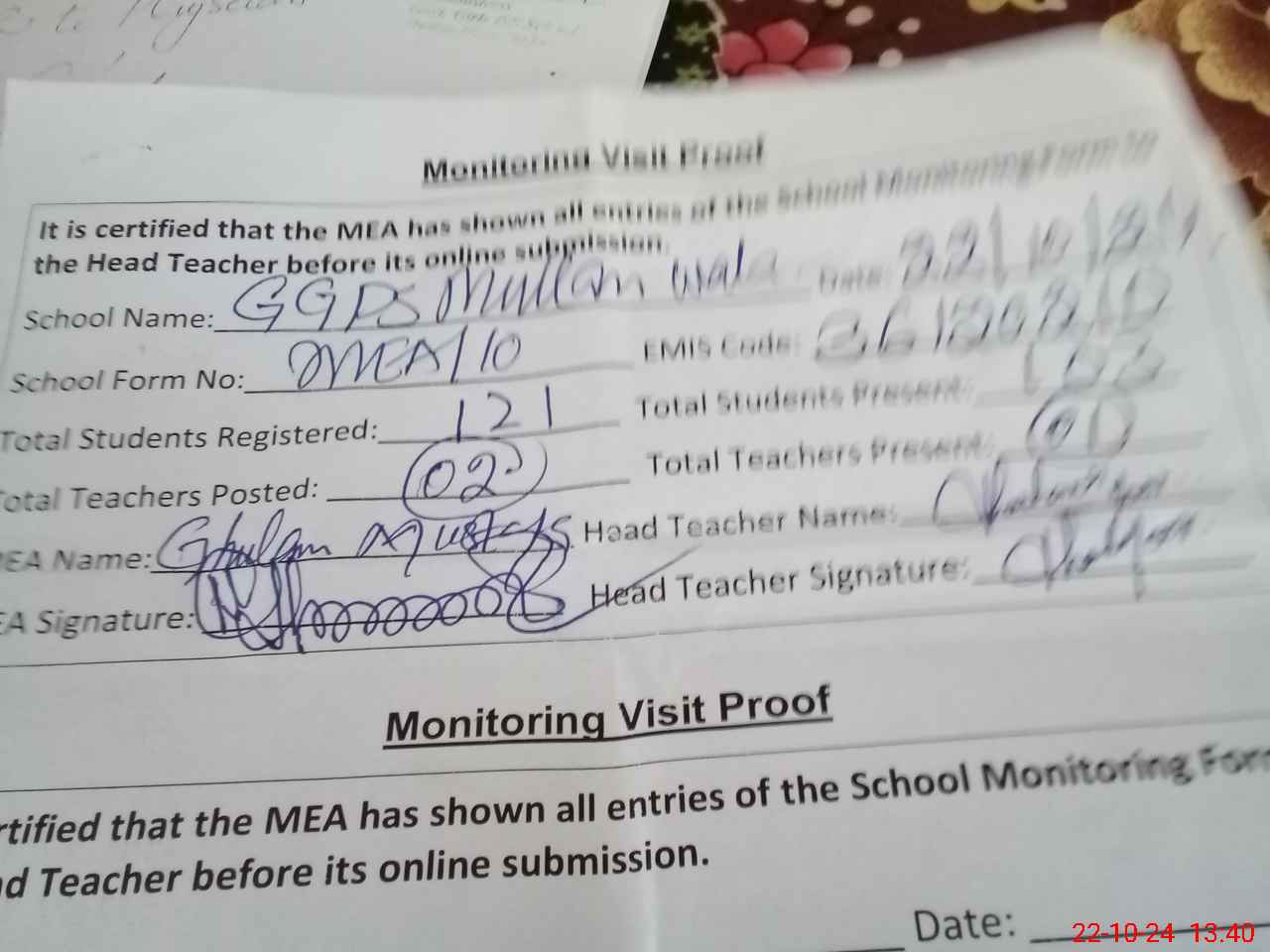 | EMIS Code: 36120210 | Name of School: GGPS MULLAN WALA SHUJABAD | |||