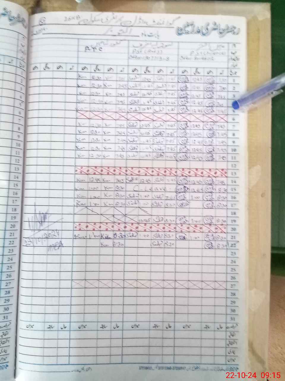 | CNIC | Full Name | Designation | R/C | Absence During Last Calender Month |