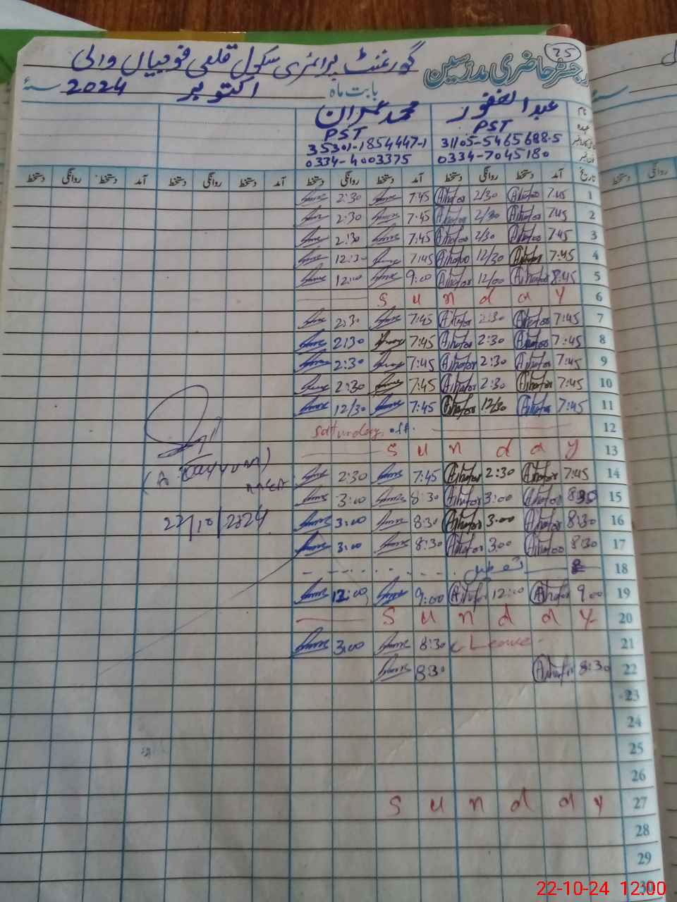 | Name: Ab**** Gh**** Designation: (School Headmaster's/Headmistress's) PST Phone/Cell Number: 03**** |