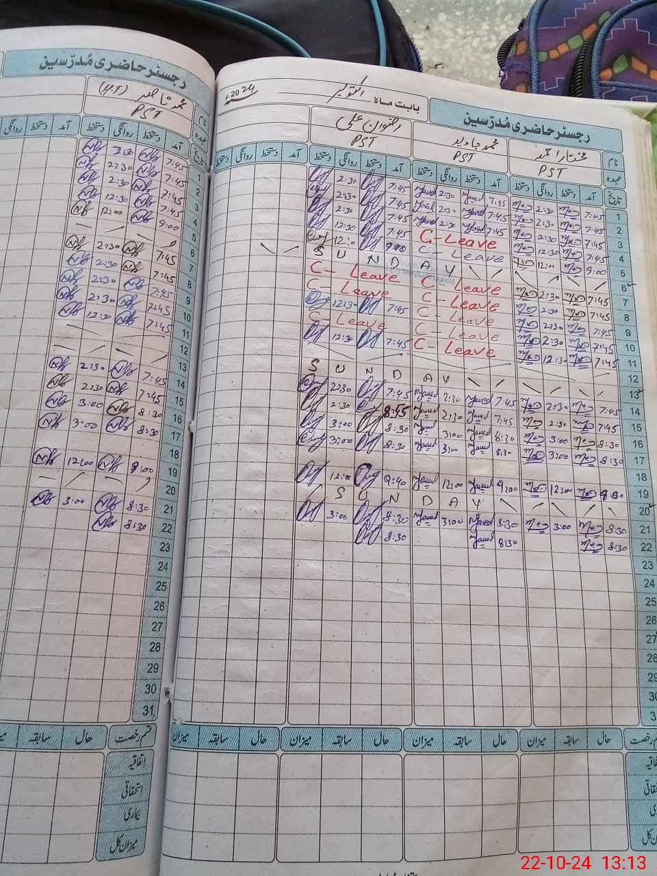 | CNIC | Full Name | Designation | R/C | Absence During Last Calender Month |