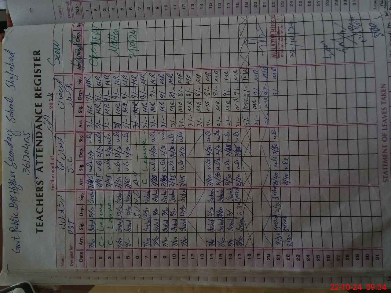 | 36**** | Zi**** Ul**** Kh**** Ha**** | SS | Regular | 0 | 0 | 0 | 0 | 0 | 0 | 0 | 0 | 0 | Absent (Un-Authorized) |
