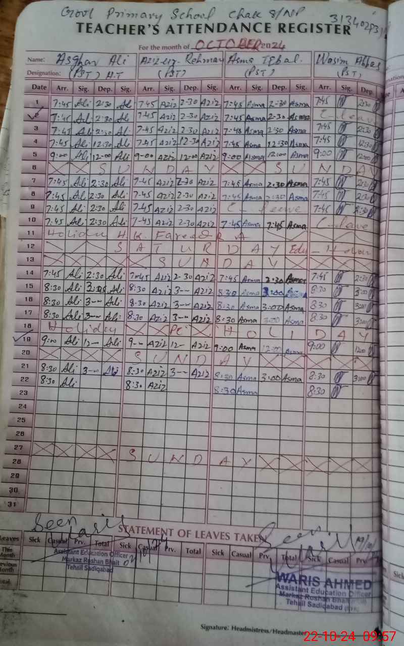| Name: As**** Al**** Designation: (School Headmaster's/Headmistress's) PST/PTC/JV Phone/Cell Number: 03**** |