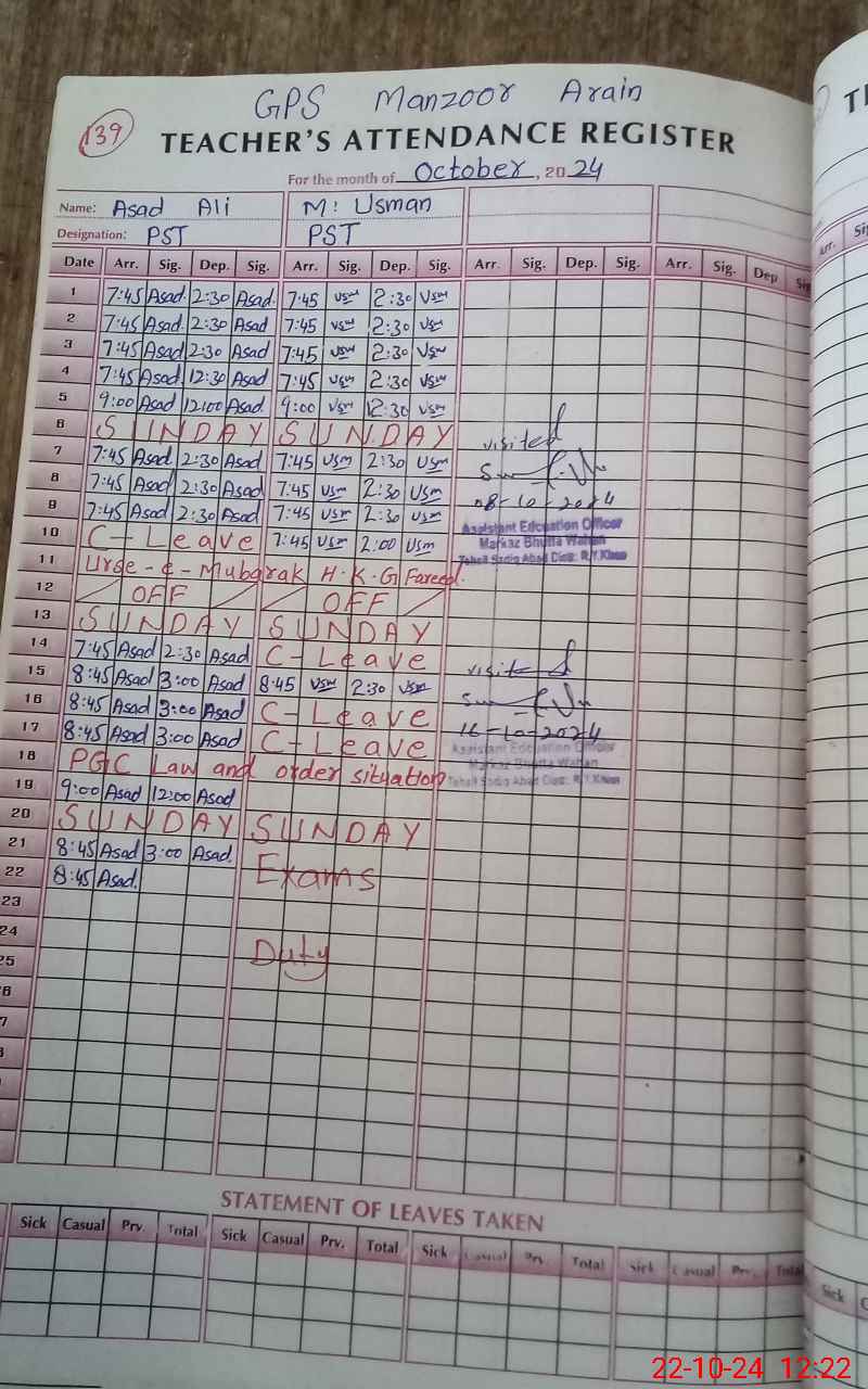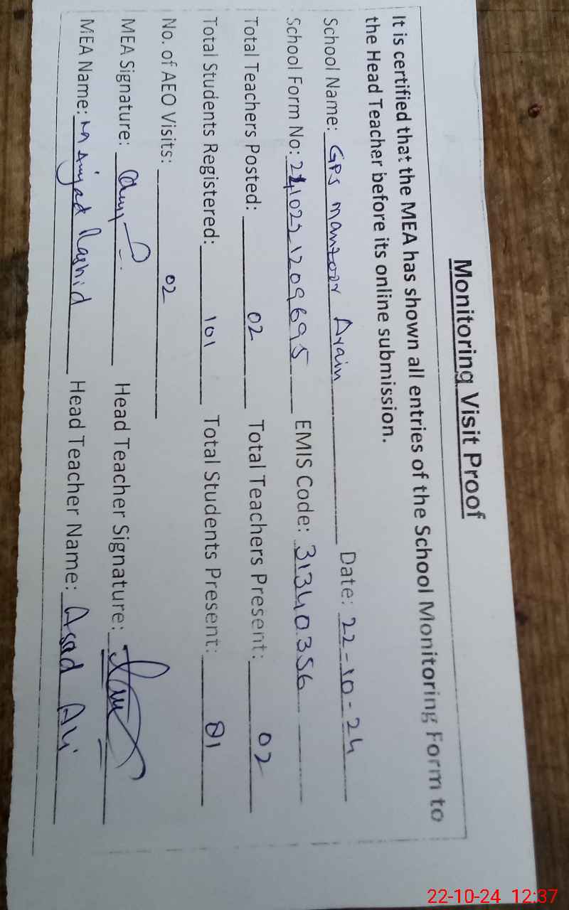 | Name: As**** Al**** Designation: (School Headmaster's/Headmistress's) PST Phone/Cell Number: 03**** |