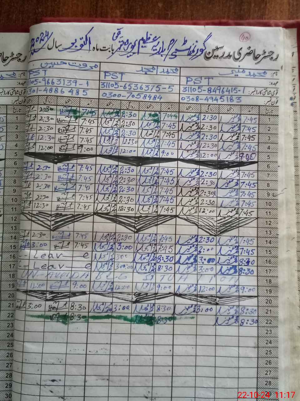 | CNIC | Full Name | Designation | R/C | Absence during last cal. month |