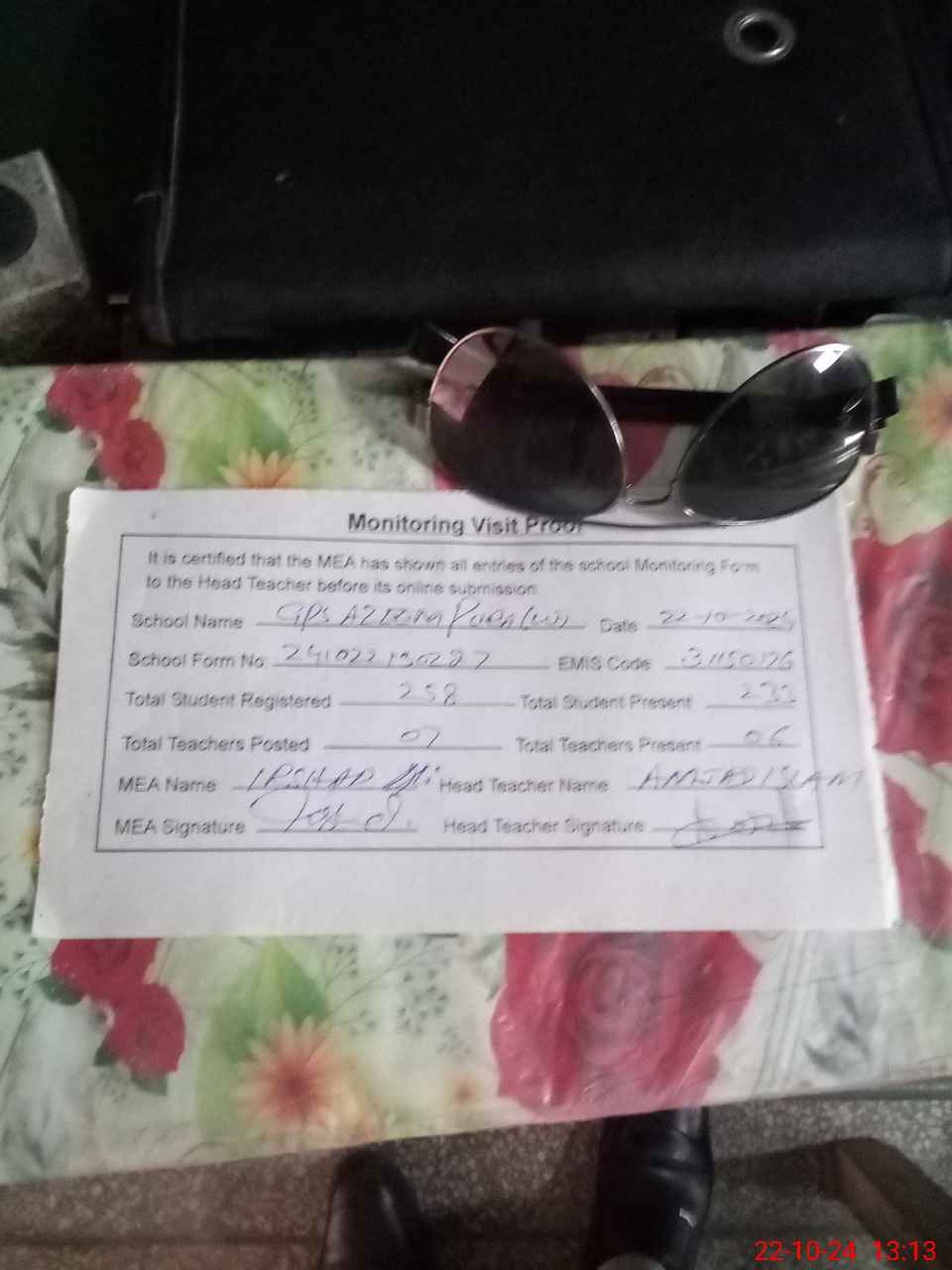| Attendance Register | Head Teacher | MEA with School | Visit Proof |