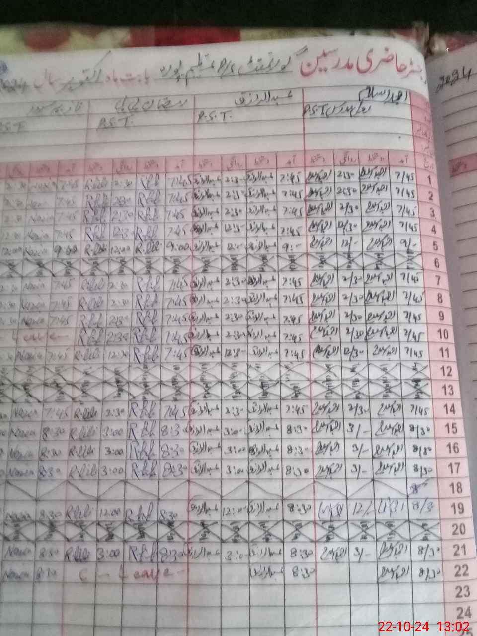| CNIC | Full Name | Designation | R/C | Absence During Last Calender Month |