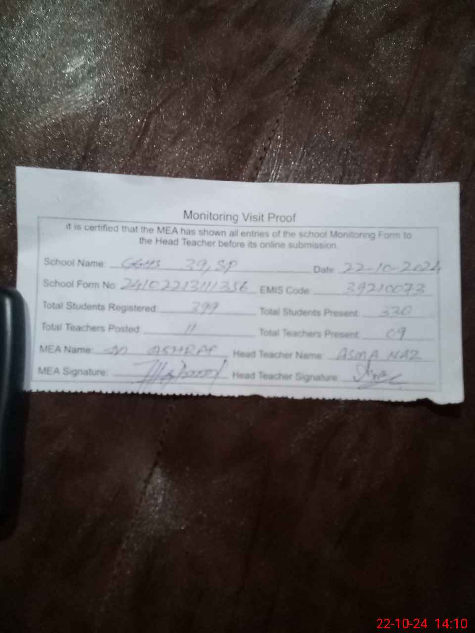 | EMIS Code: 39210073 | Name of School: GGHS CHAK NO.39 SP | |||