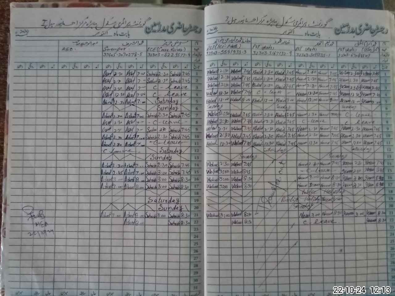 | CNIC | Full Name | Designation | R/C | Absence during last cal. month |