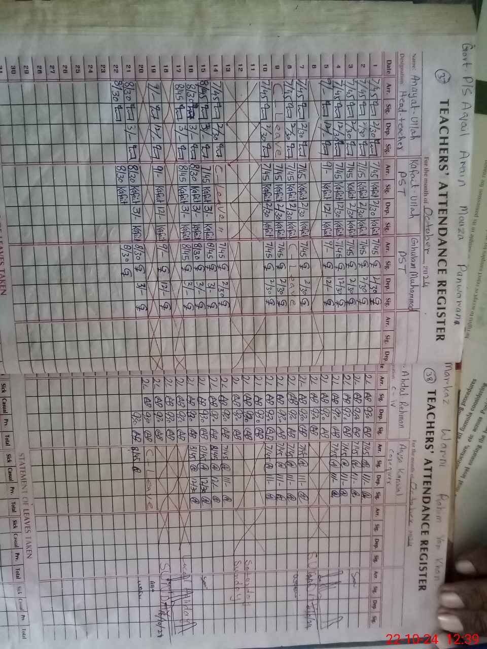 | CNIC | Full Name | Designation | R/C | Absence During Last Calender Month |