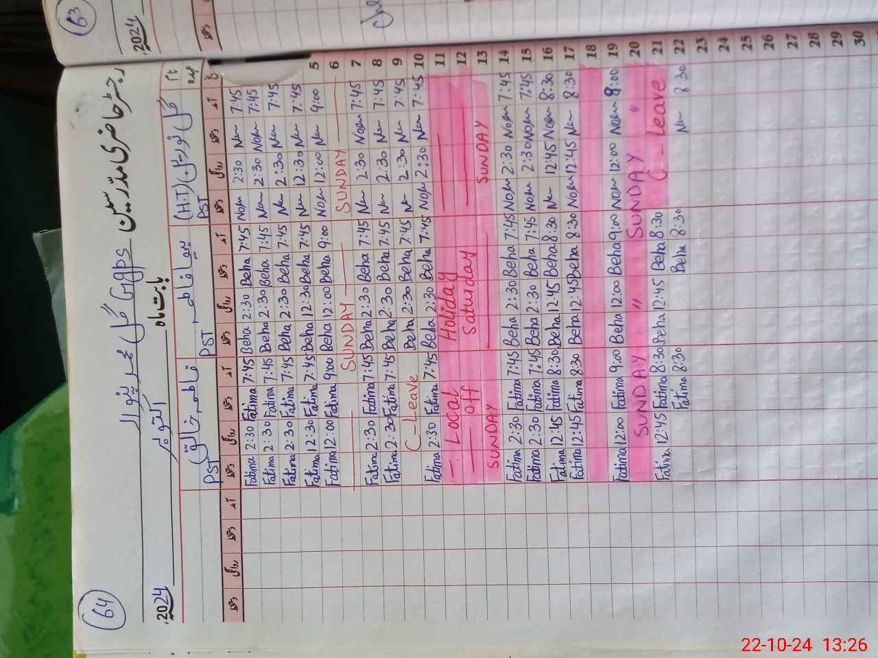 | Leave | Duty | Absent | Maternity | Medical | Ex- Pak |