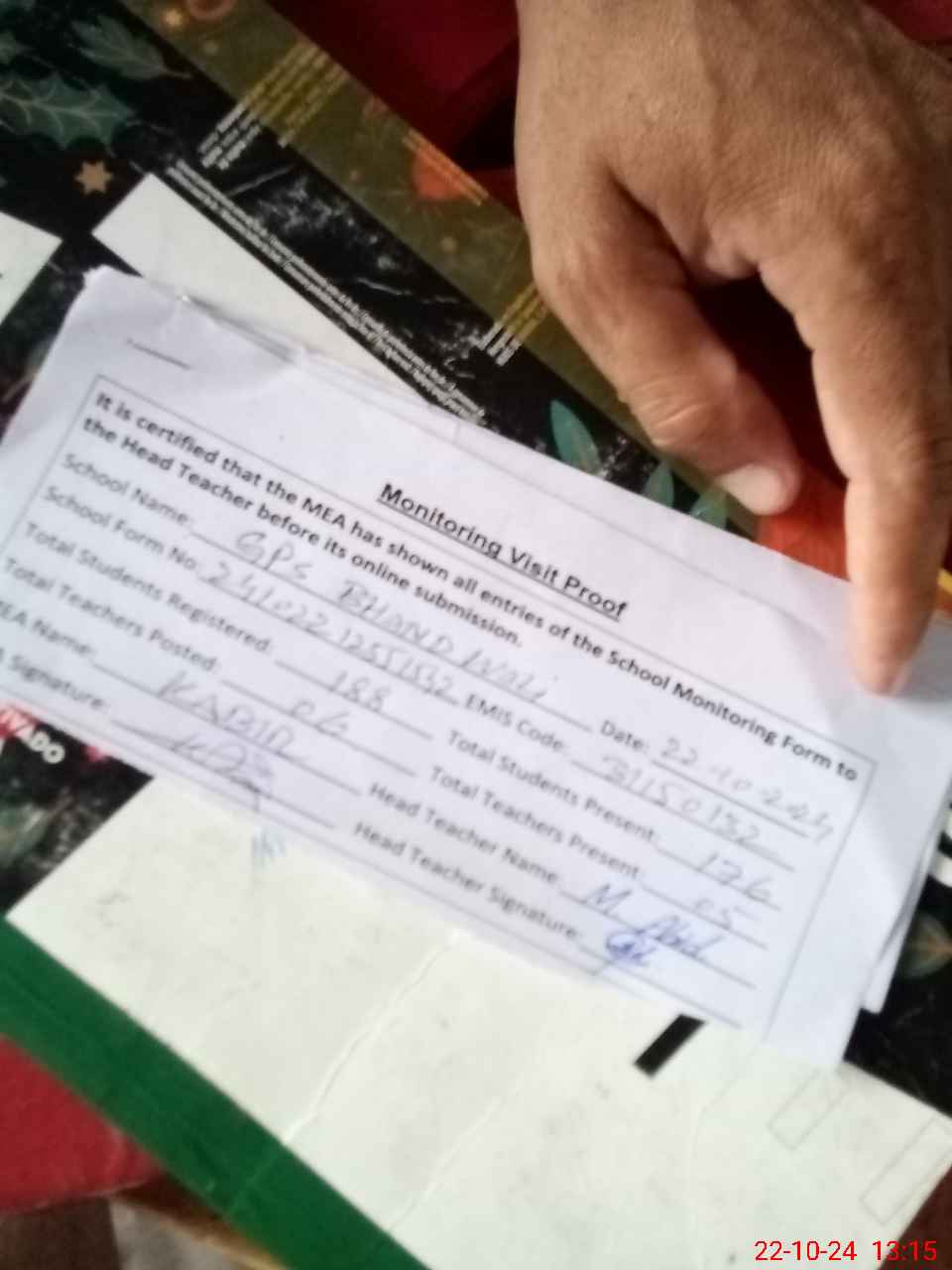 | Remarks (Use Separate Page if Required): School is looking very beautiful | |||||