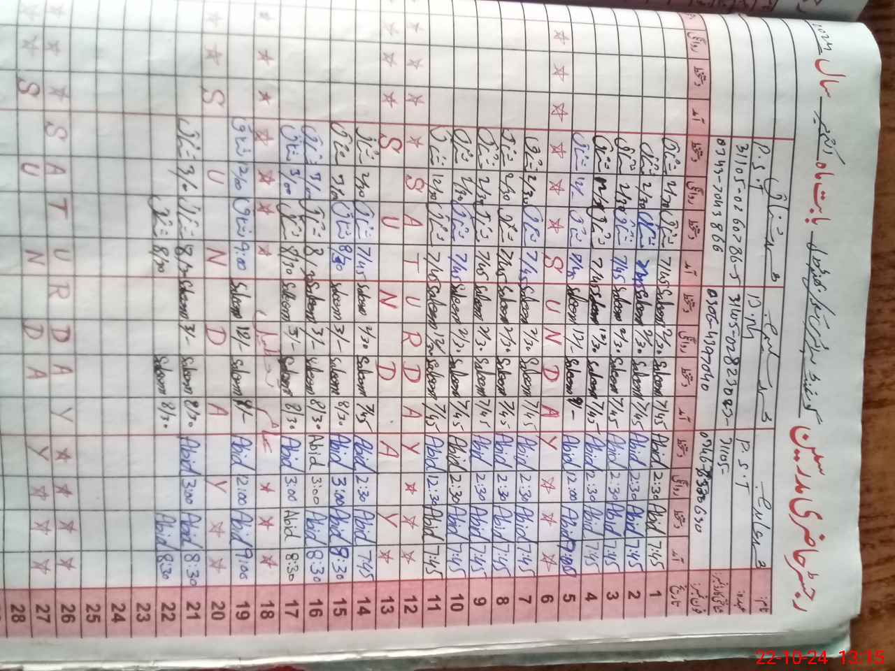 | 31**** | Mu**** Ka**** | PST | Regular | 1 | 0 | 0 | 0 | 0 | 0 | 0 | 0 | 1 | Casual |