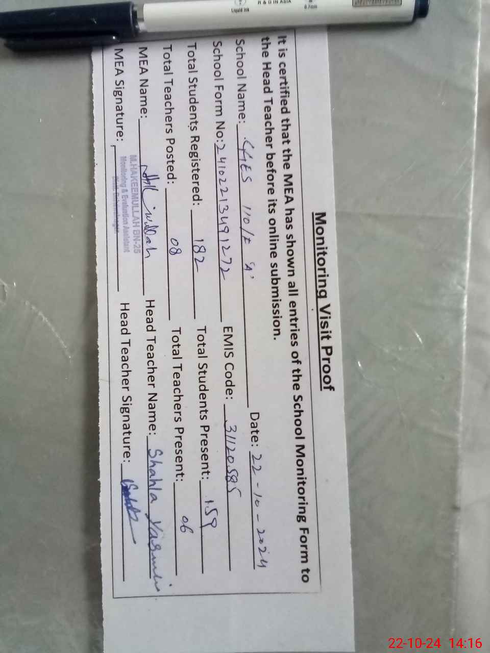 | EMIS Code: 31120585 | Name of School: GGES CHAK NO.110/F (A) | |||
