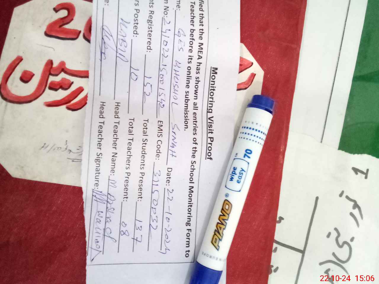 | Attendance Register | Head Teacher | MEA with School | Visit Proof |