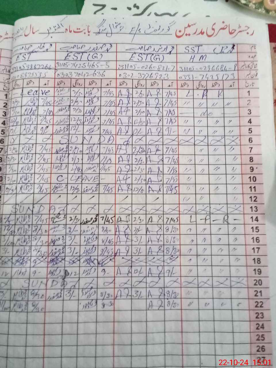 | Name: Mo**** Ar**** Designation: (School Headmaster's/Headmistress's) EST Phone/Cell Number: 03**** |