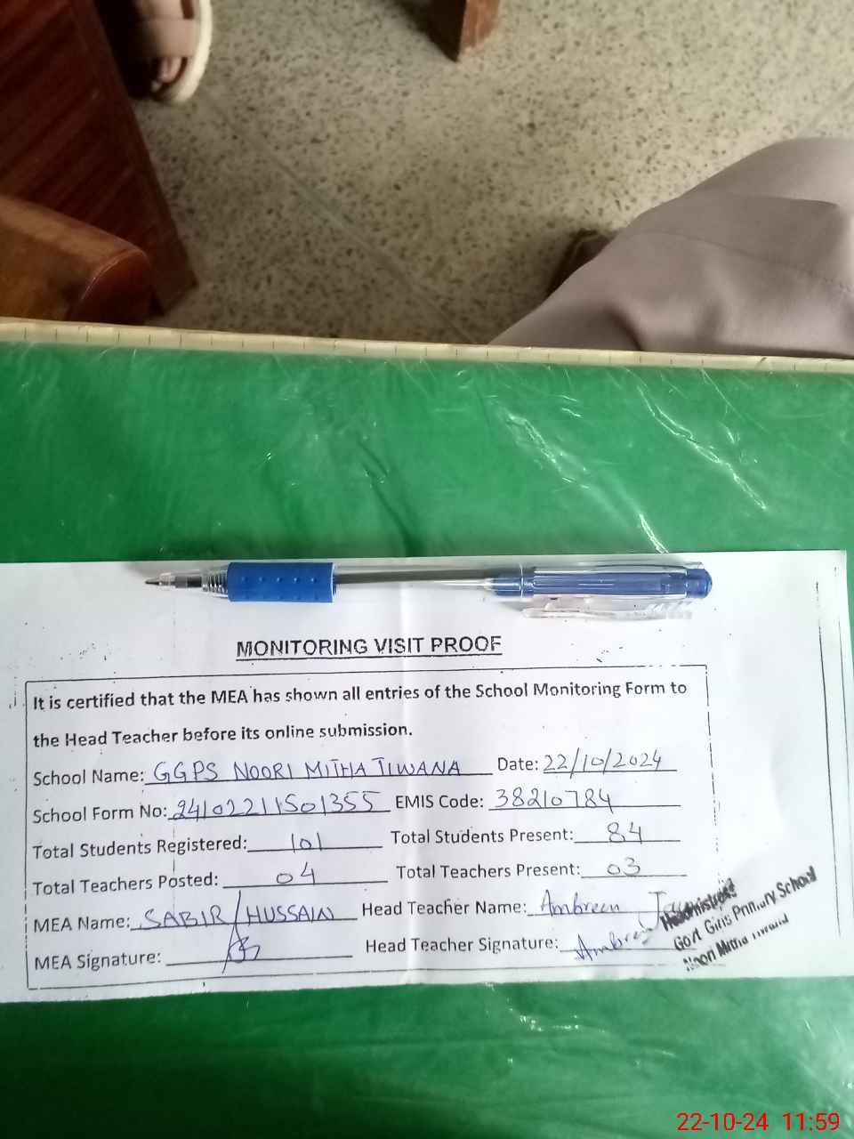 | EMIS Code: 38210784 | Name of School: GGPS NOORI MITHA TIWANA | |||