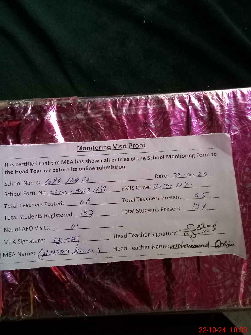 | EMIS Code: 31310117 | Name of School: GPS HAKRA | |||