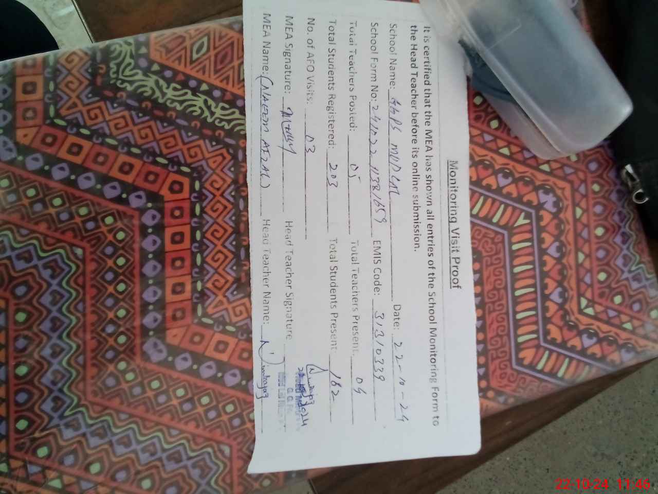| EMIS Code: 31310339 | Name of School: GGPS MUD LAL | |||