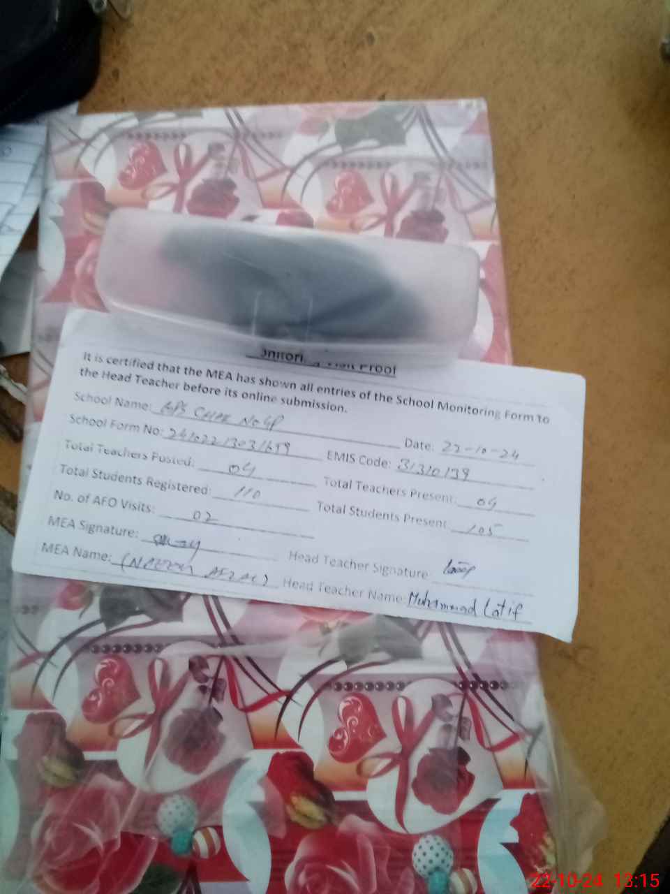 | Certified that this School was Inspected by the Undersigned MEA/DMO Today and the Information Stated Above is as Per Record. | |||||