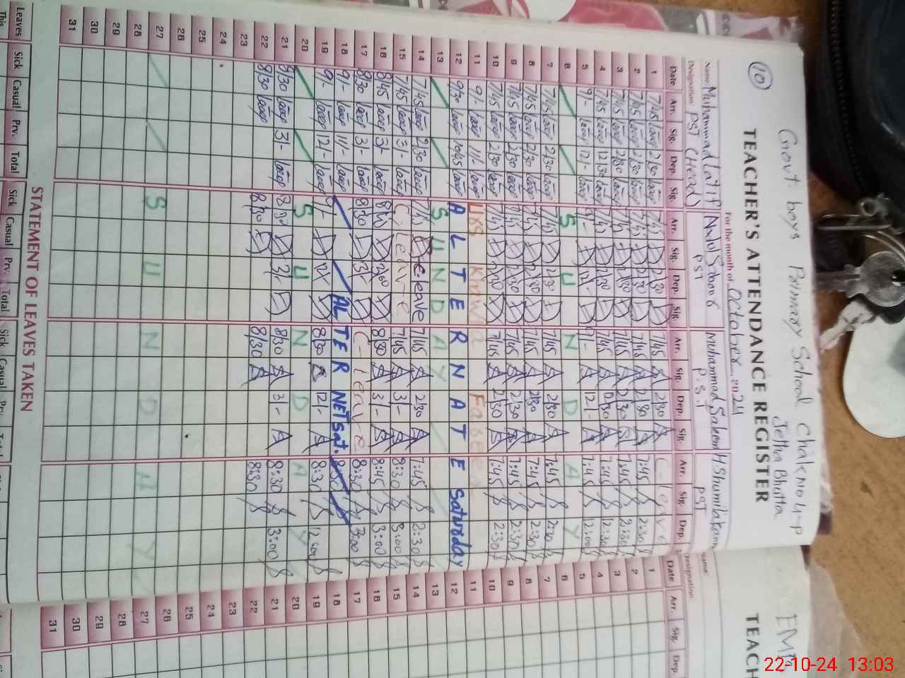 | Leave | Duty | Absent | Maternity | Medical | Ex- Pak |