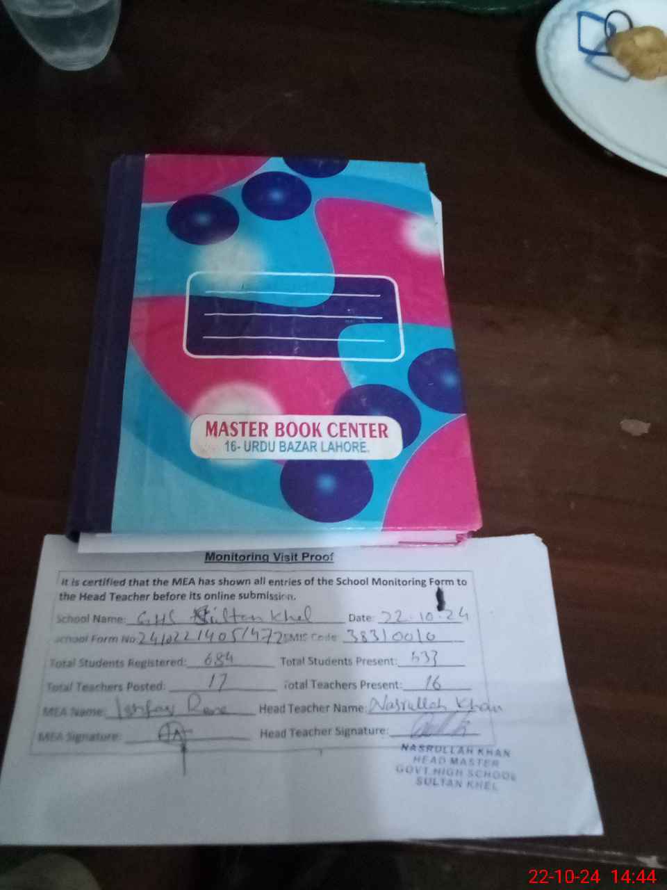 | EMIS Code: 38310010 | Name of School: GHS SULTAN KHEL | |||
