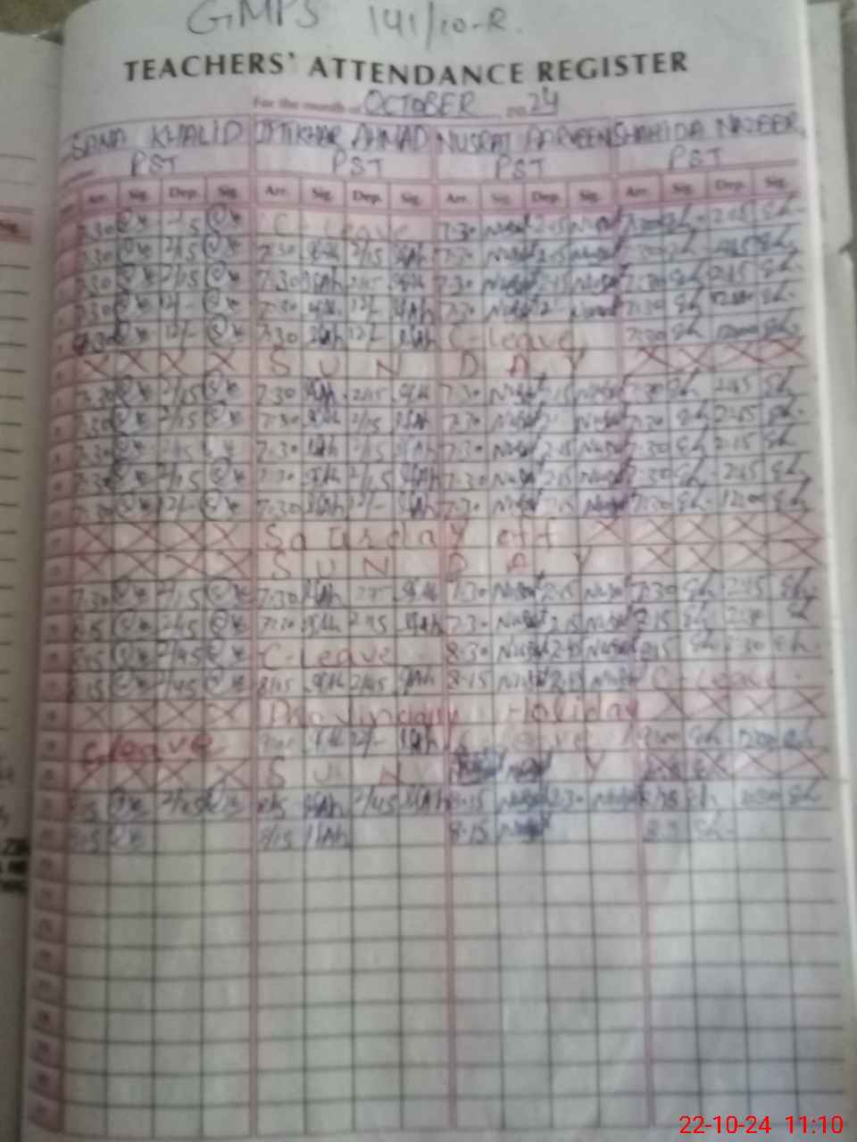 | CNIC | Full Name | Designation | R/C | Absence During Last Calender Month |