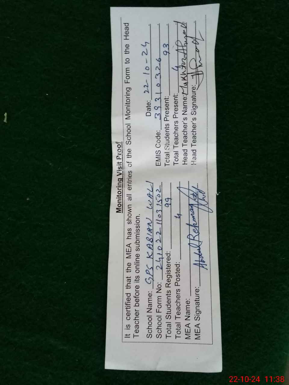 | EMIS Code: 39310326 | Name of School: GPS KABIAN WALI | |||