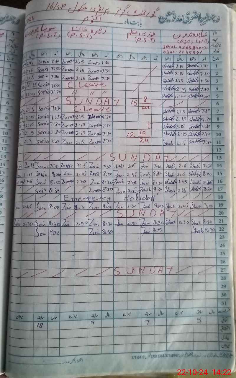 | Name: Zo**** Kh**** Designation: (School Headmaster's/Headmistress's) PST Phone/Cell Number: 03**** |
