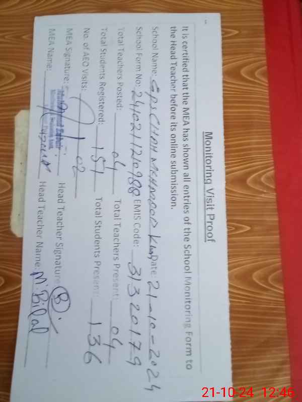 | EMIS Code: 31320179 | Name of School: GPS CHAH MEHMOOD KHAN | |||