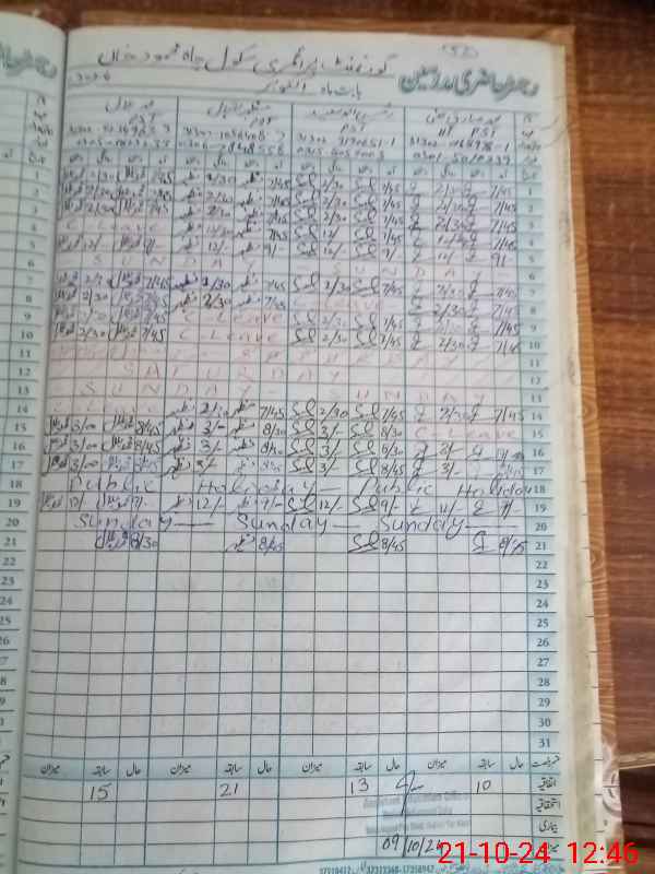 | CNIC | Full Name | Designation | R/C | Absence During Last Calender Month |