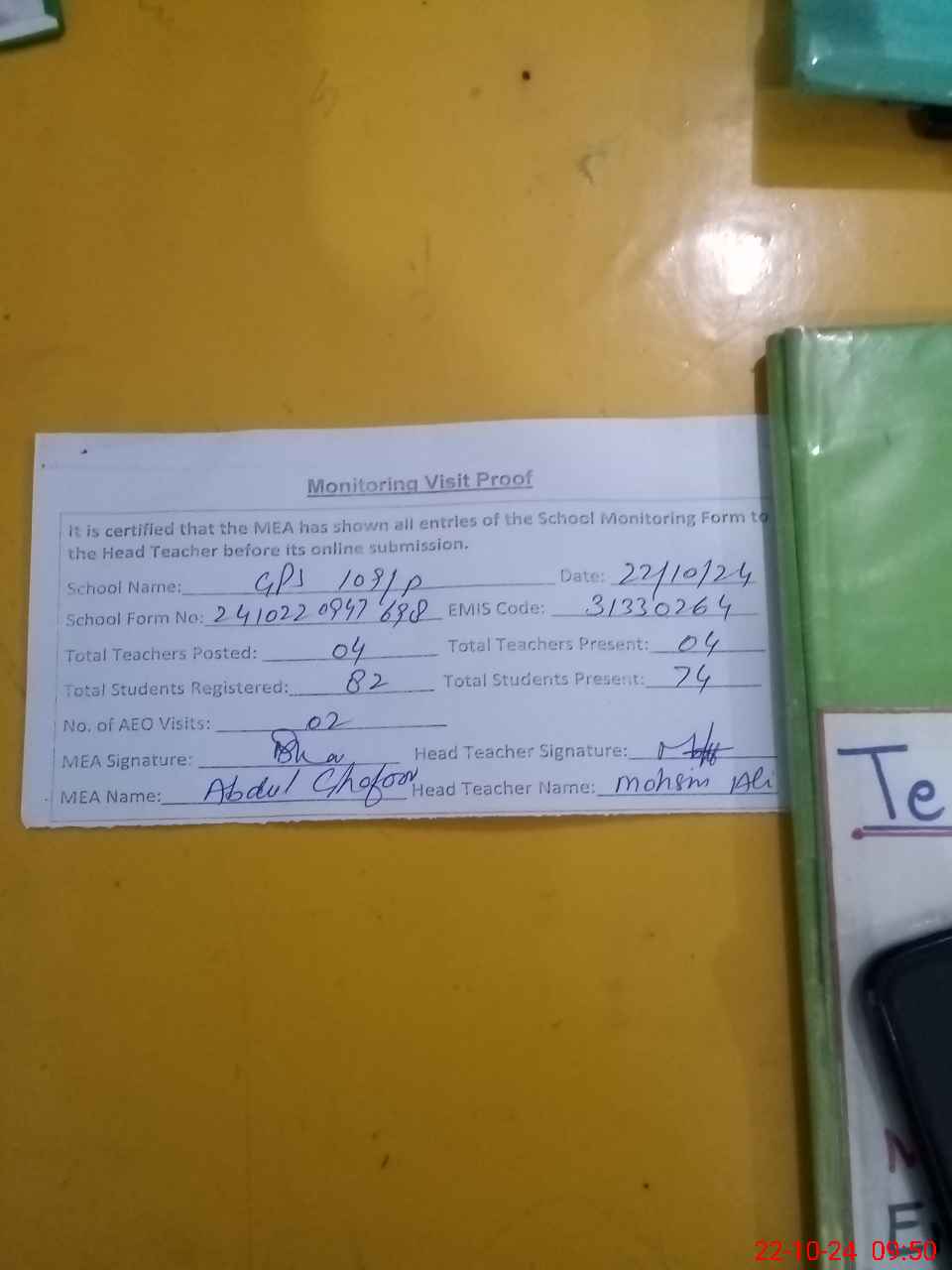| EMIS Code: 31330264 | Name of School: GPS CHAK 109/P | |||