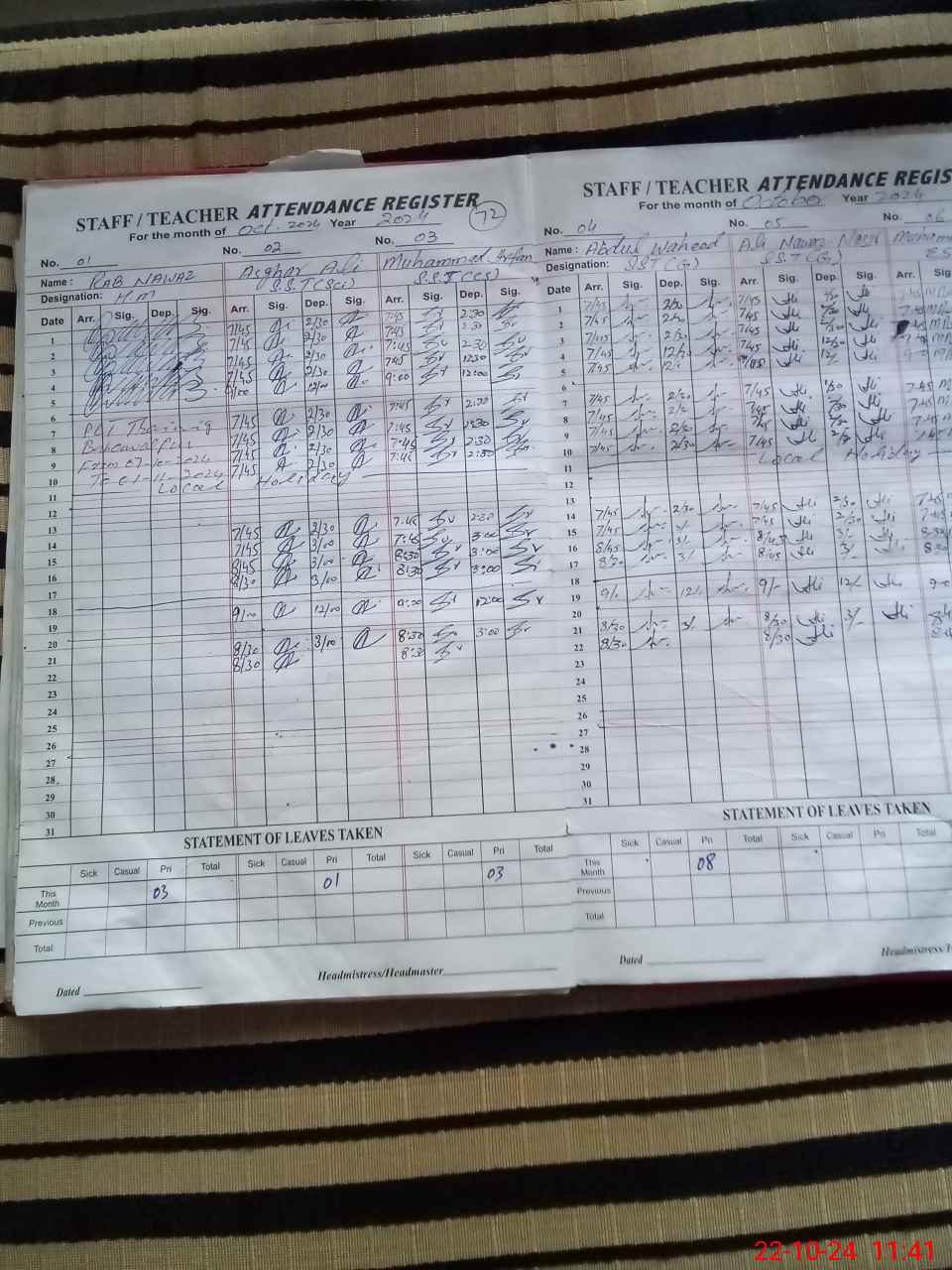 | Leave | Duty | Absent | Maternity | Medical | Ex- Pak |