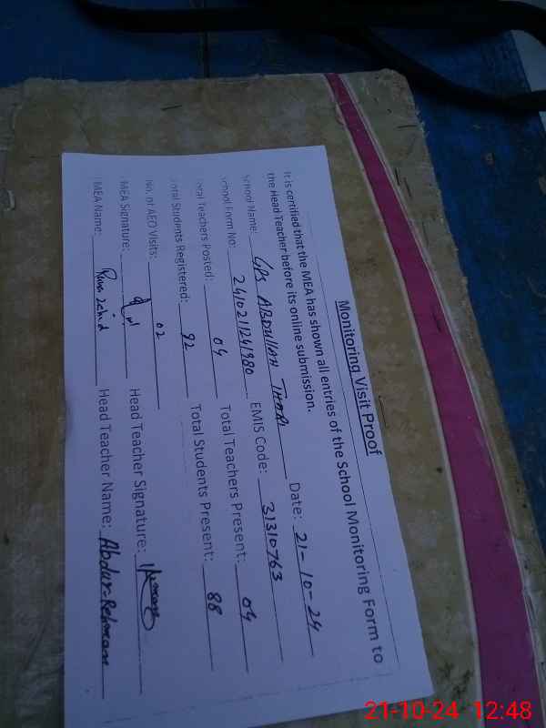 | EMIS Code: 31310763 | Name of School: GPS ABDULLAH THARI | |||