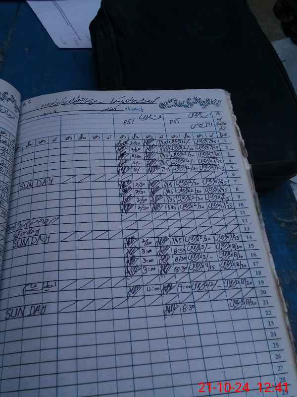| CNIC | Full Name | Designation | R/C | Absence During Last Calender Month |
