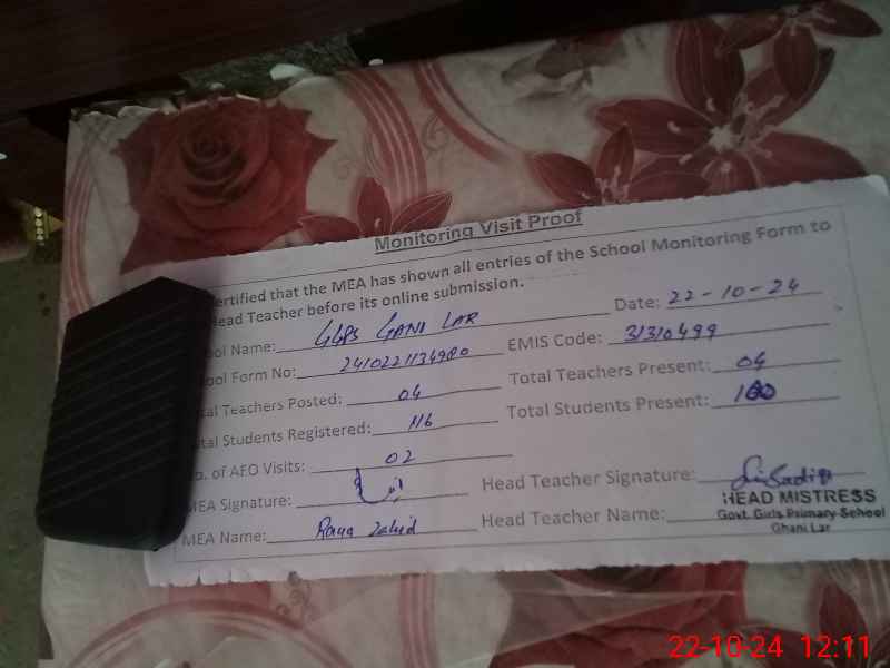 | EMIS Code: 31310499 | Name of School: GGPS GHANI LAR | |||