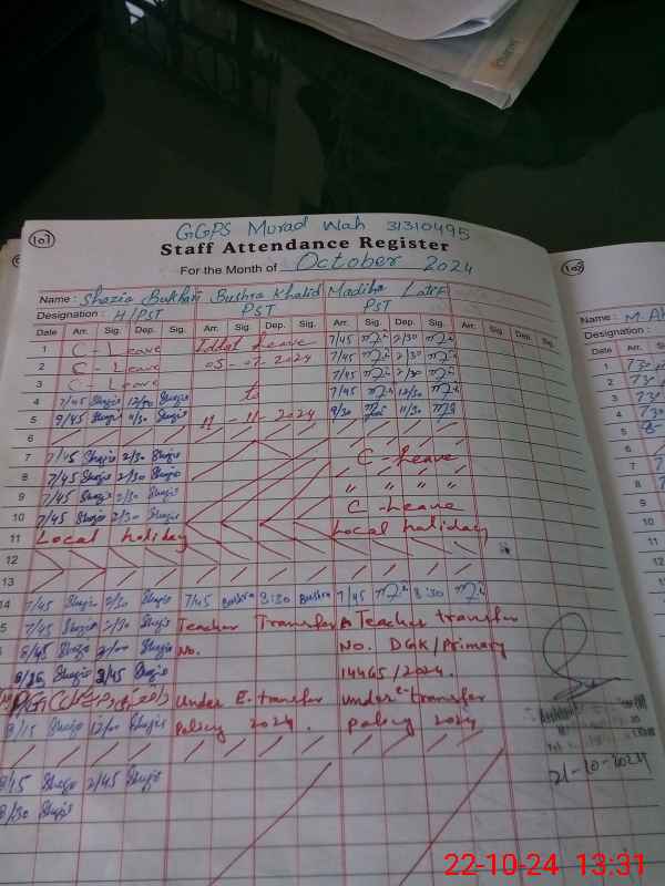 | Name: SH**** BU**** Designation: (School Headmaster's/Headmistress's) PST Phone/Cell Number: 03**** |