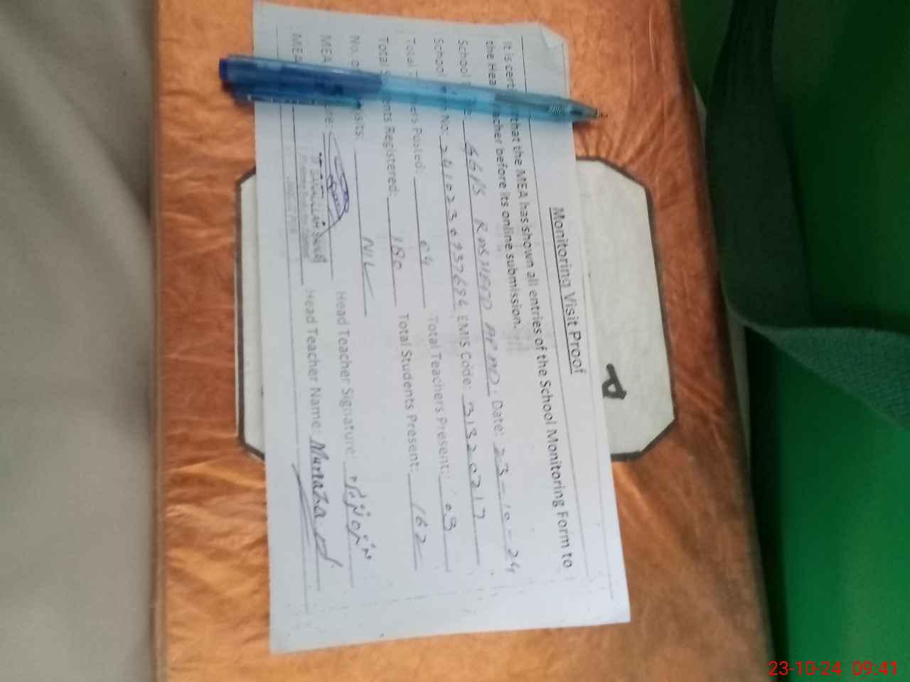 | Attendance Register | Head Teacher | MEA with School | Visit Proof |