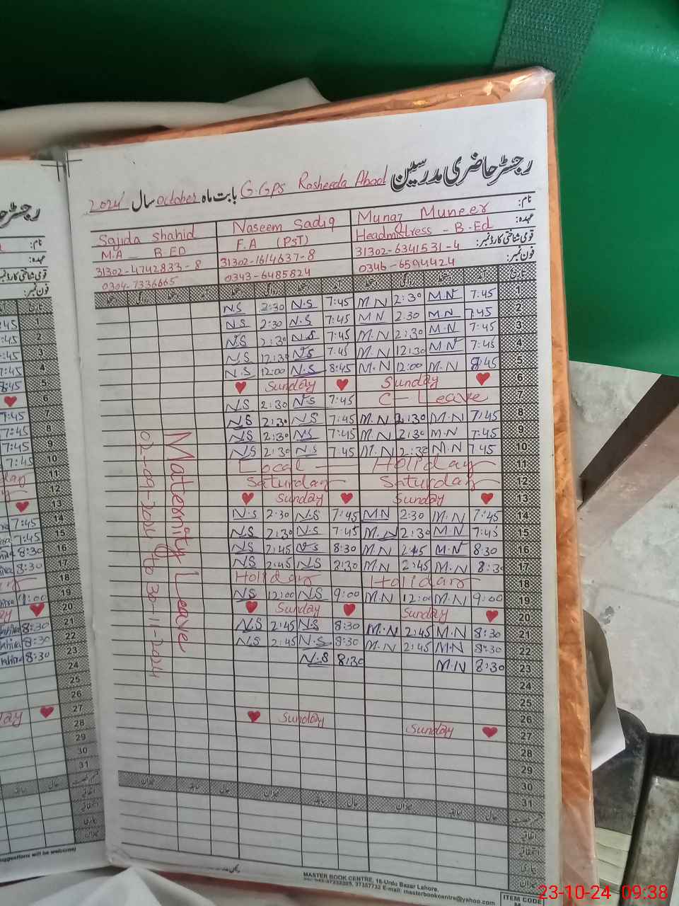 | Leave | Duty | Absent | Maternity | Medical | Ex- Pak |