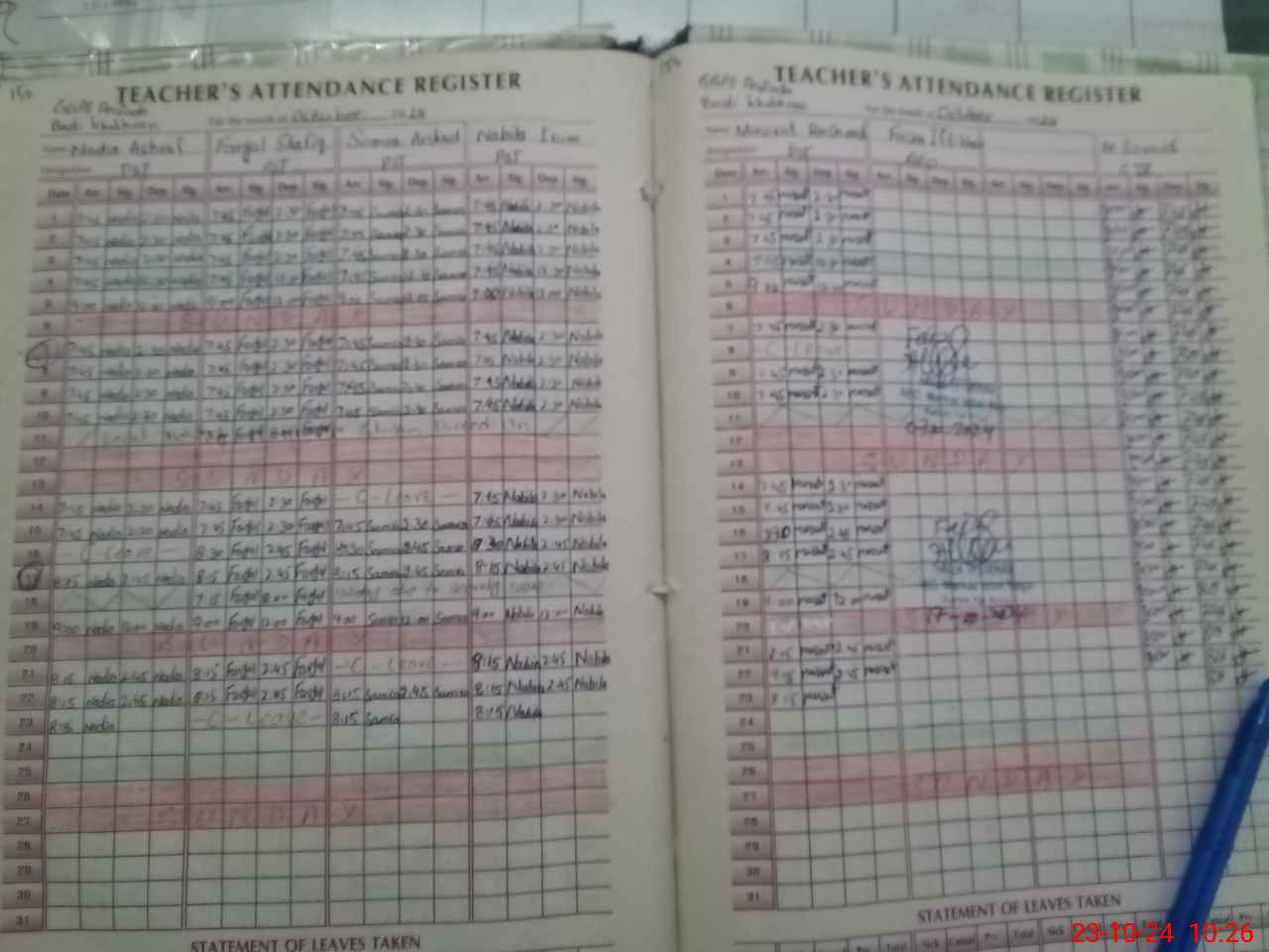 | Leave | Duty | Absent | Maternity | Medical | Ex- Pak |