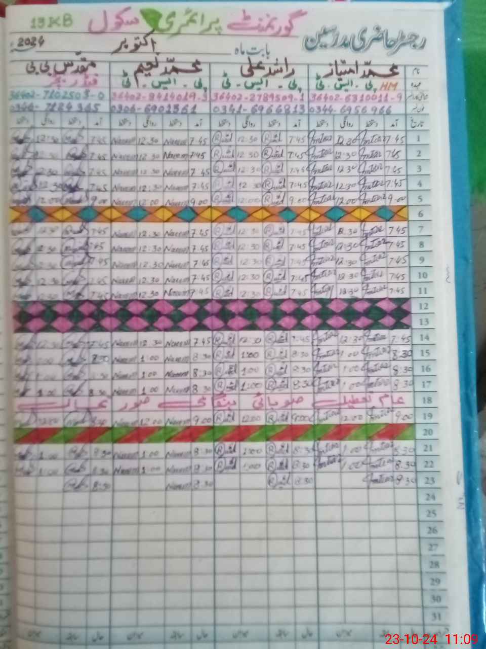 | Name: MU**** IM**** Designation: (School Headmaster's/Headmistress's) PST Phone/Cell Number: 03**** |
