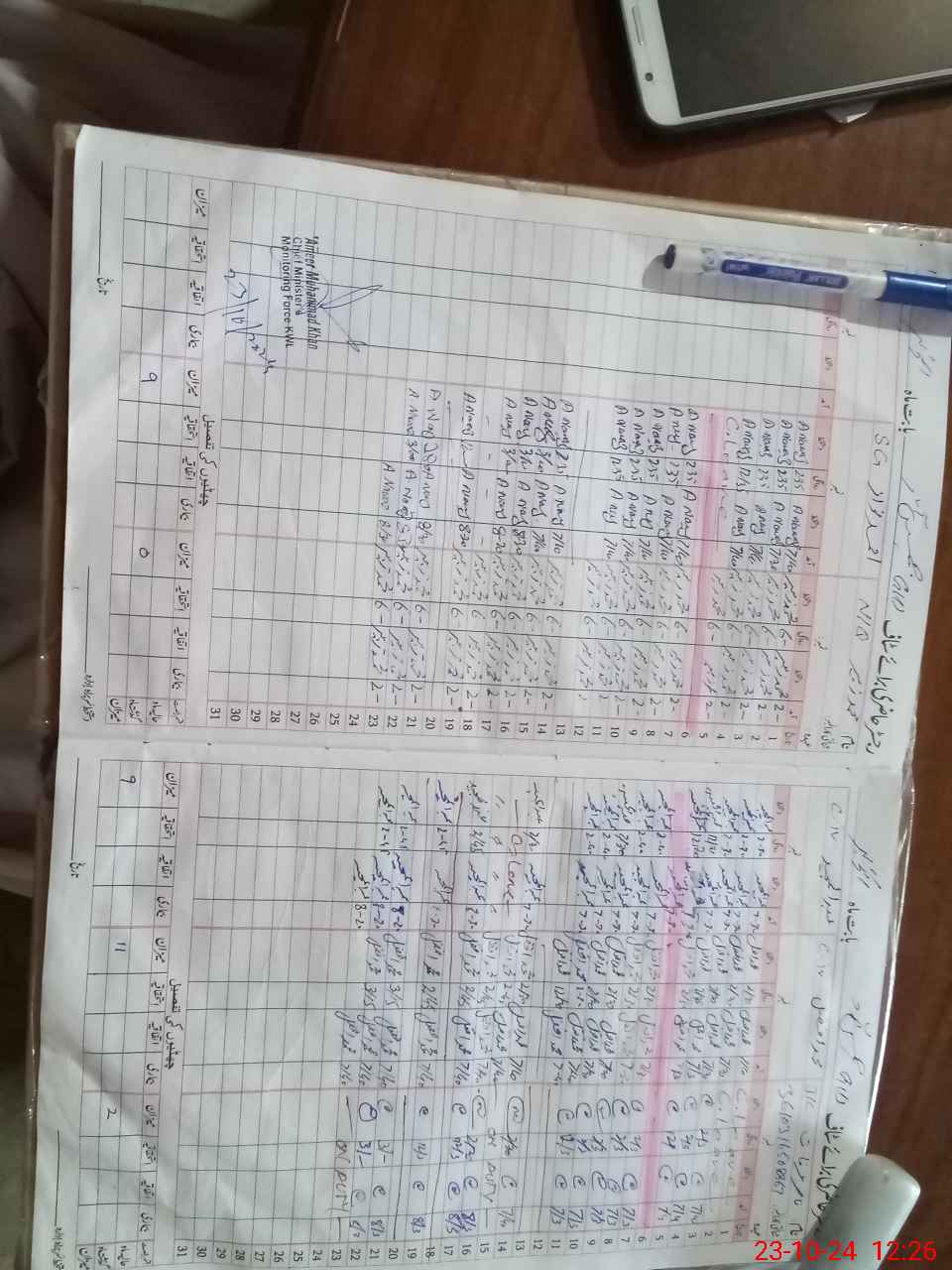 | CNIC | Full Name | Designation | R/C | Absence during last cal. month |