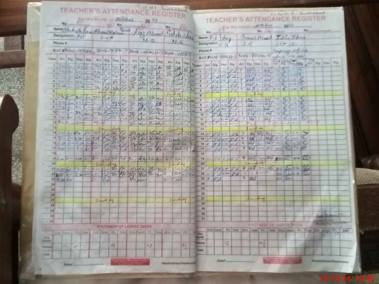 | CNIC | Full Name | Designation | R/C | Absence During Last Calender Month |