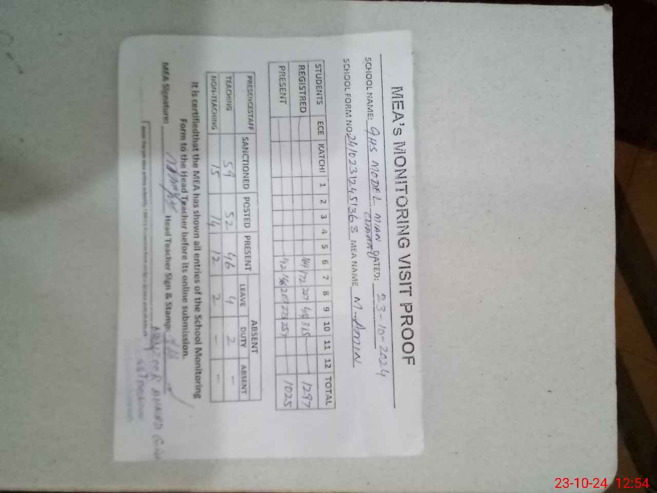 | EMIS Code: 36430006 | Name of School: GHS MODEL MIAN CHANNU | |||